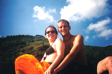 Brad and I on a boat between towns
